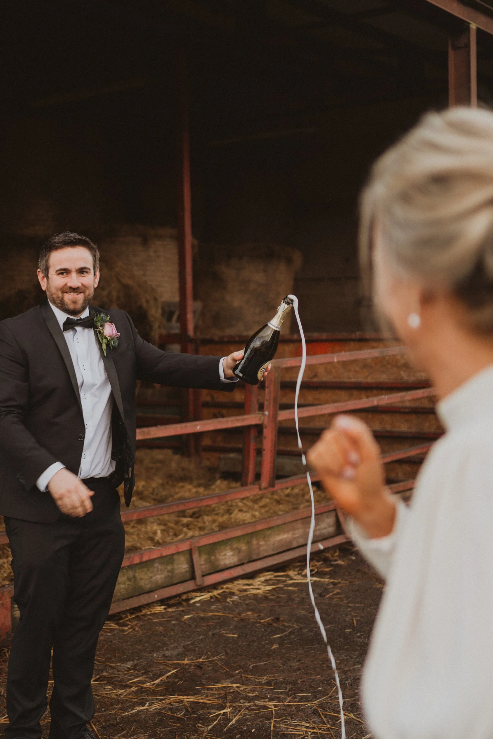 Martin arrived at the groom’s house first as I wasn’t back from the hairdressers yet. It was a lovely fresh and crisp December morning and I knew that Martin would get great photos of Kevin and his other loves in his life (his cows) and that he did! We will treasure these. I returned from my appointment and Martin came over to capture that really special morning in our house, it was so magical. It was honestly as if I had met Martin before- he was so friendly and seemed to be buzzing as much as we all were! The time just disappeared and the next thing I knew we were getting into the car ready to leave for the chapel! Ahh, I would just love to do this part again. I wouldn’t have even known Martin was there in the church, he melted into the background but managed to capture all the special moments all the same. After the chapel, we (more so Kevin) thought it would be a good idea to return to the farm for more photos! And here’s me thinking he got his farm photoshoot out of the day in the morning time. It was good fun anyway. We then went out of Kevin’s farm lane for our group photos. Martin kindly provided the smoke bombs which was a lovely surprise and really added to the photos. We made our way back to our house for the last of the photos. I’m so glad we did because these are the most special of us in our wee home together. The sun was beginning to disappear at this point and I couldn’t wait any longer before joining the party so Martin came along with us to the hotel. It was great to have him there capturing the faces of our nearest and dearest. I wouldn’t change anything about the day, only to do it all again! Martin was 10/10! So super nice, relaxed and went with the flow on the day. So glad we booked you and you were free to capture all the memories of our favourite day! Hopefully, see you down the line, Martin, for more photoshoots!
